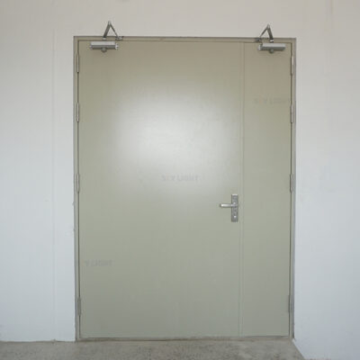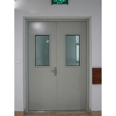 - Cánh cửa: Cấu tạo từ 2 tấm thép mạ có độ dày từ 0.8mm, độ dày 50mm. Lõi chống cháy MGO. Bề mặt sơn tĩnh điện 1 màu đồng nhất với phần khung cửa.